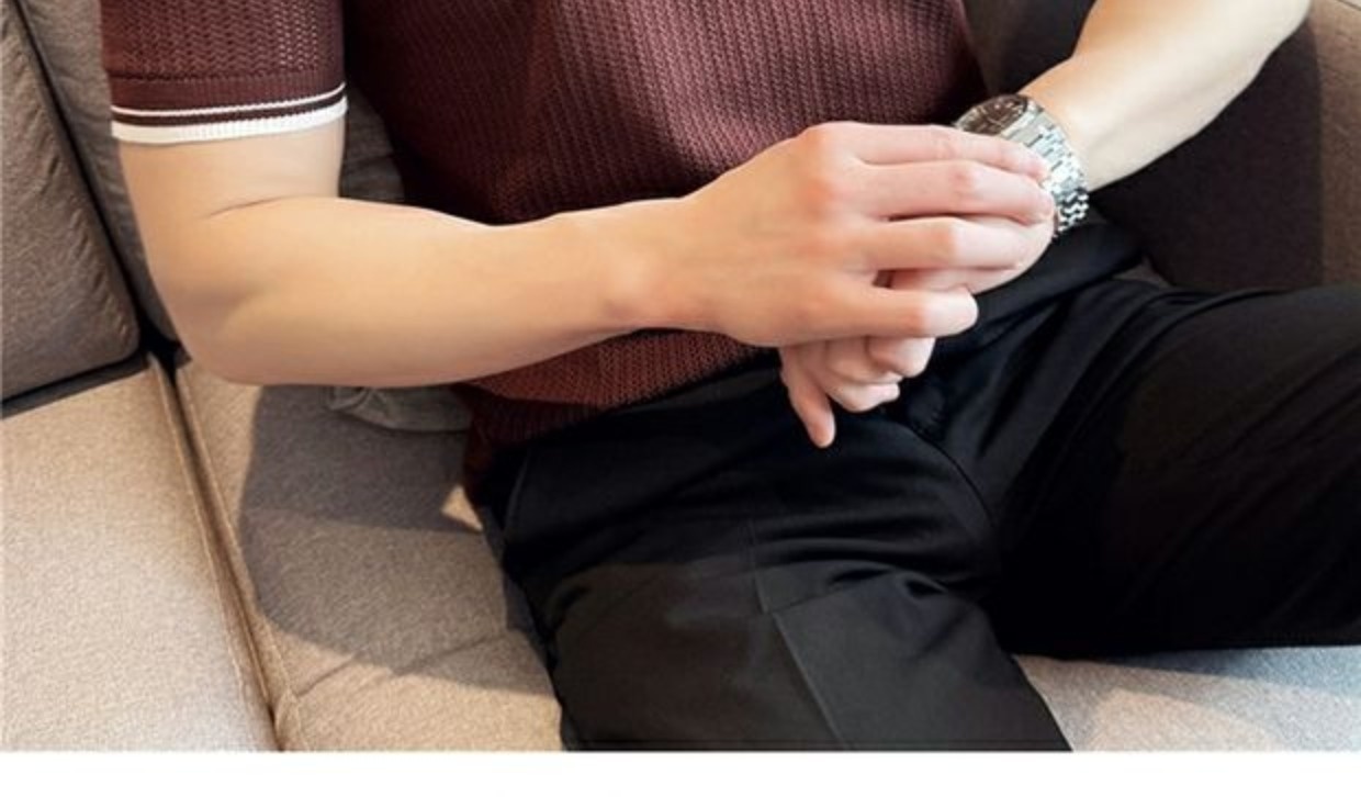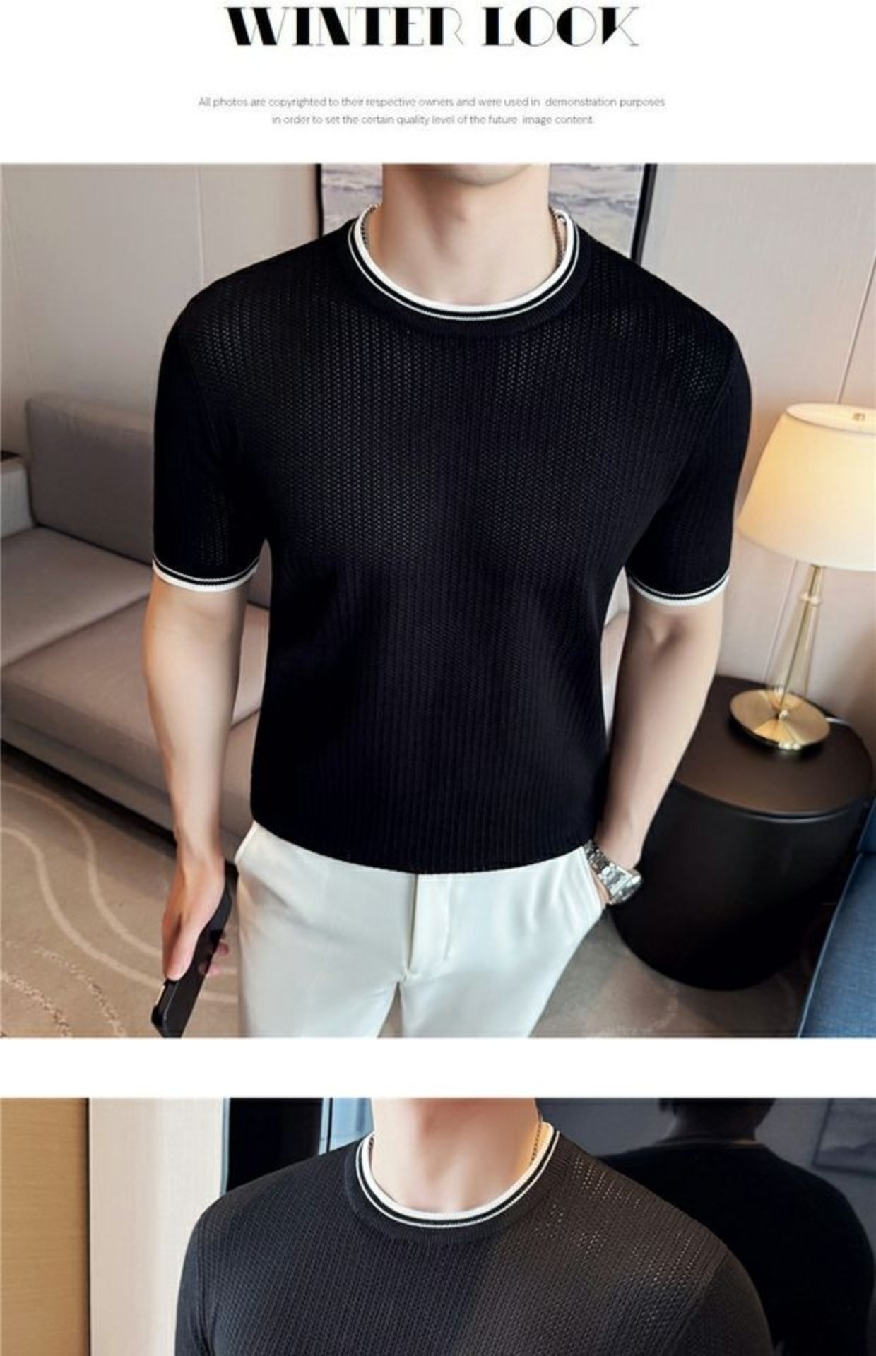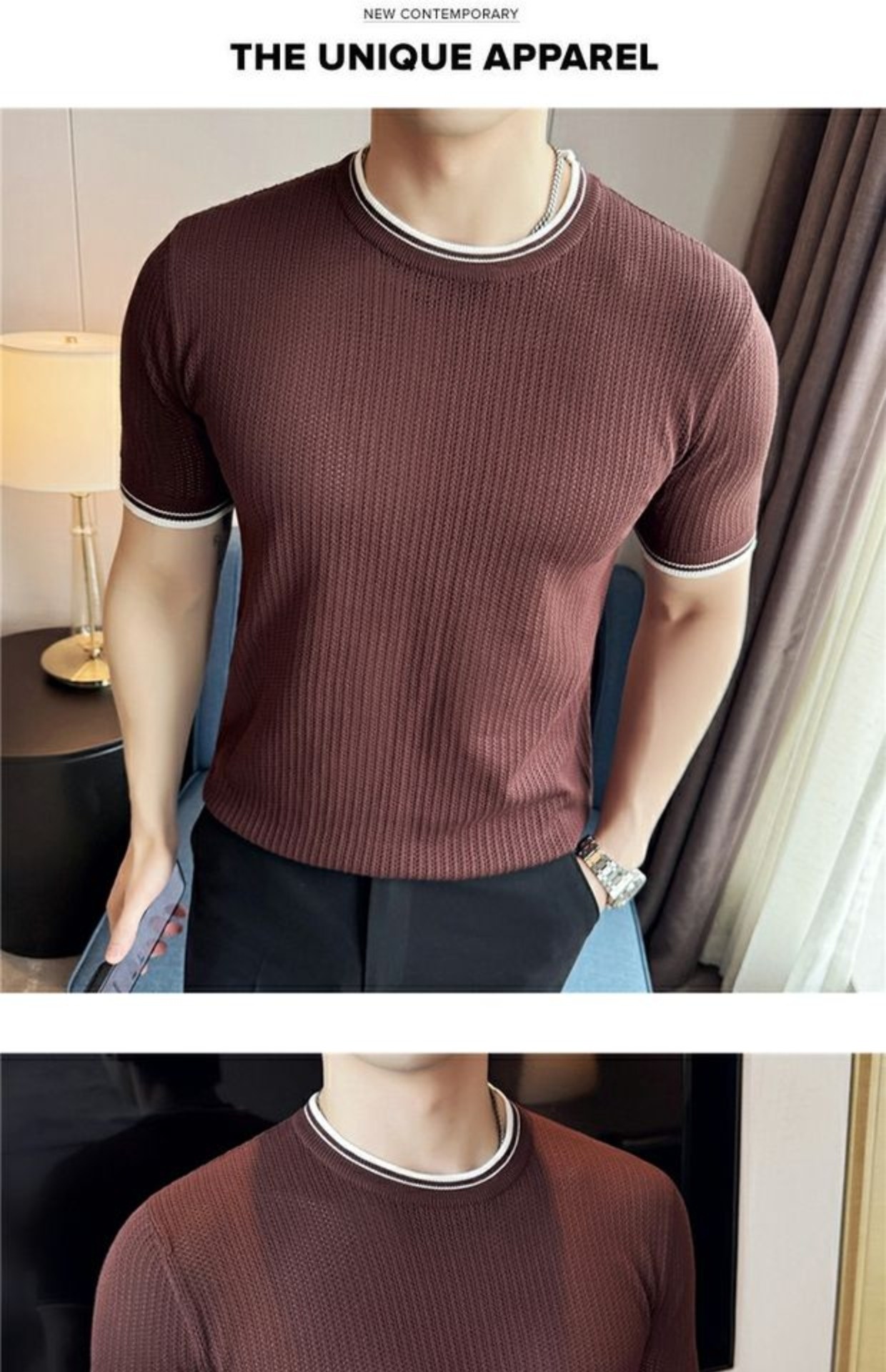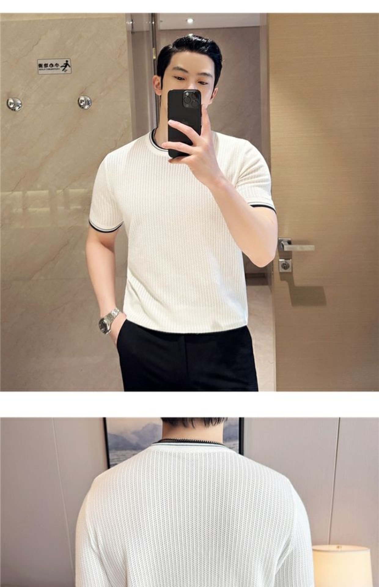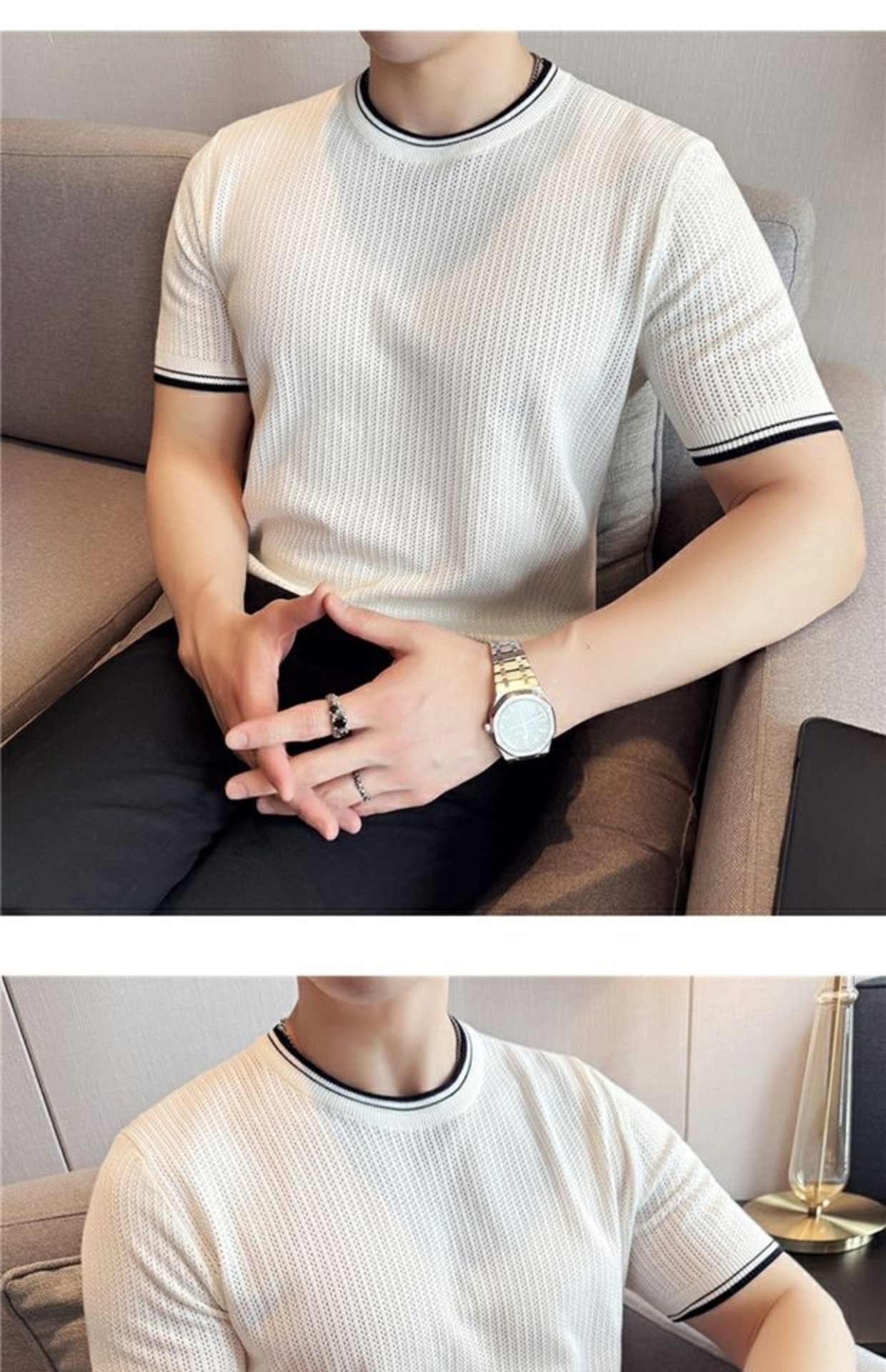 Men's Round Neck Contrast Color Stretch Knitted T-shirt