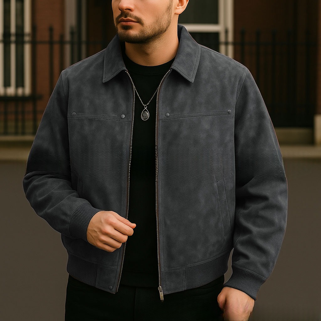 Vintage Brown Lapel Men's Leather Overcoat Jacket